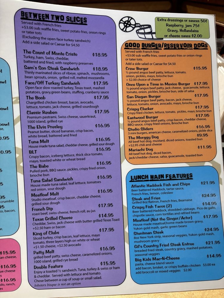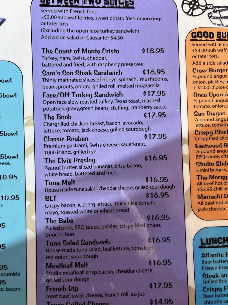 Studio Diner, located in San Diego, offers a nostalgic dining experience with its classic American diner menu available for breakfast, lunch, dinner, and late-night cravings. The restaurant not only provides hearty food options but also caters to vegan and vegetarian preferences. With a welcoming atmosphere and quick, friendly service, Studio Diner stands out for its comfort food offerings like the popular Country Fried Steak and Monte Cristo sandwich. The menu features generous portions and flavorful dishes, from crispy fries to sweet milkshakes. The cozy diner ambiance, adorned with old-school photos and film memorabilia, adds to the charm of this establishment. Overall, Studio Diner embodies a perfect blend of delicious comfort food, exceptional service, and a nostalgic vibe, making it a must-visit for those seeking a taste of classic American diner cuisine.