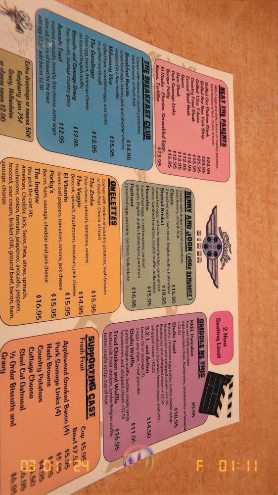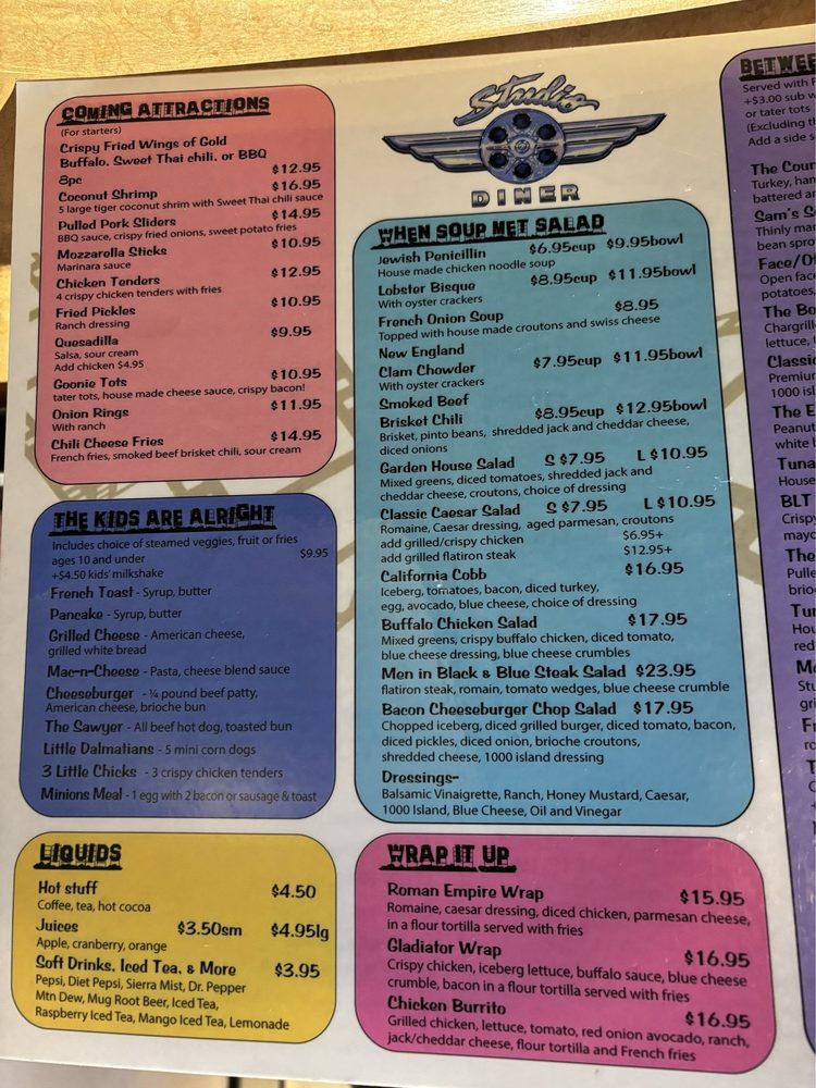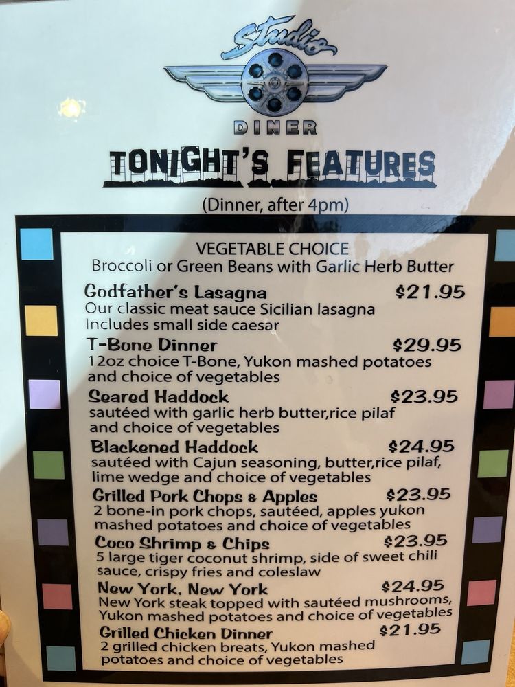 Studio Diner Menu